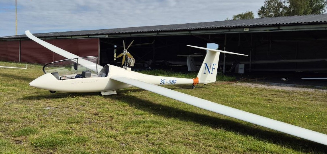 Spontan 30 minutersflygning kan även göras för 1500 kr med självstartande motorsegelflygplan Motorfalke SF25. Min ålder 9 år. Man sitter bredvid varandra utan fallskärm.