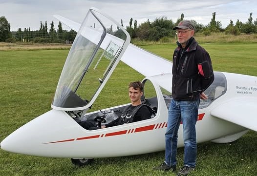 För tidsbokad provlektion 3500kr med flyg bogserat segelflygplan ASK21 eller Duo Discus. Min ålder 15 år. Man flyger med fallskärm.